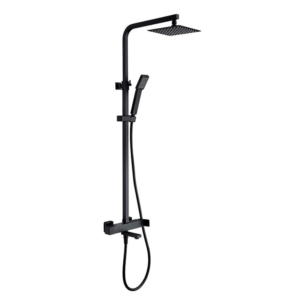 Mango ducha cuadrado negro mate. Grifería de latón negro.
