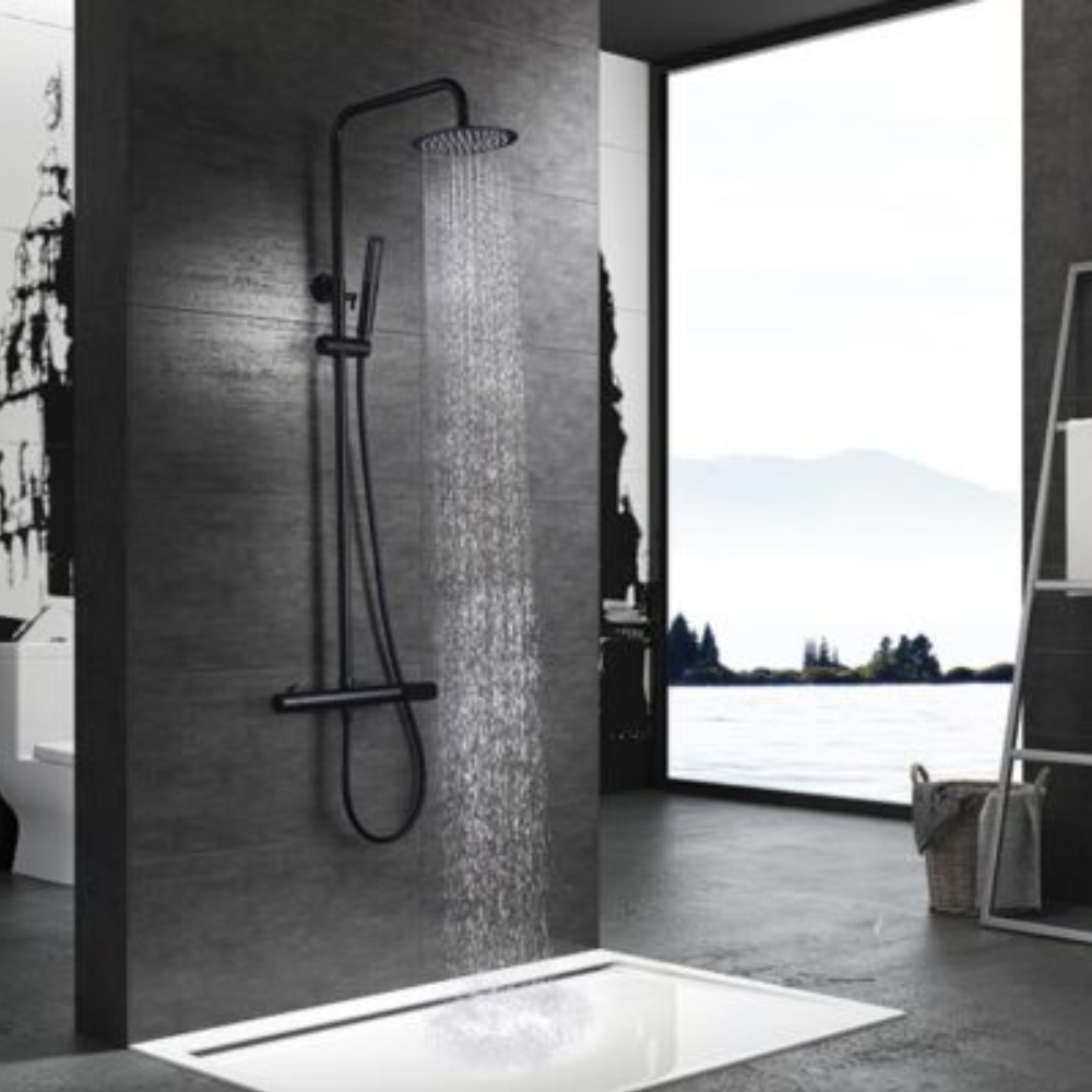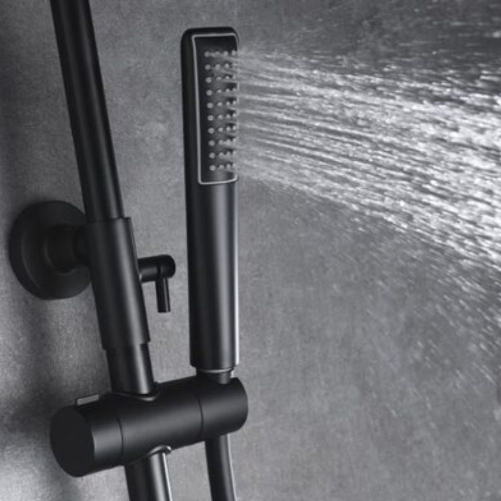 Mango de ducha redondo de 1 posición en negro mate.