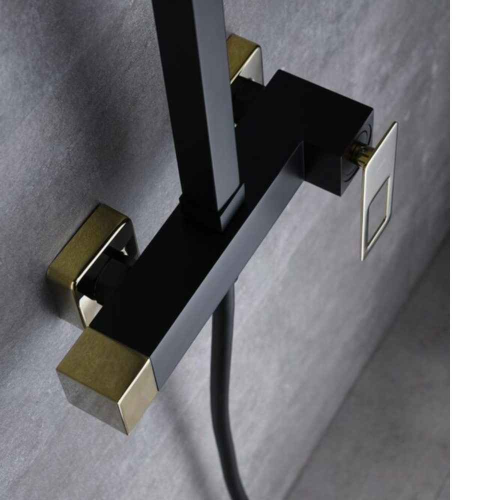 Grifería de latón negro, oro brillo.