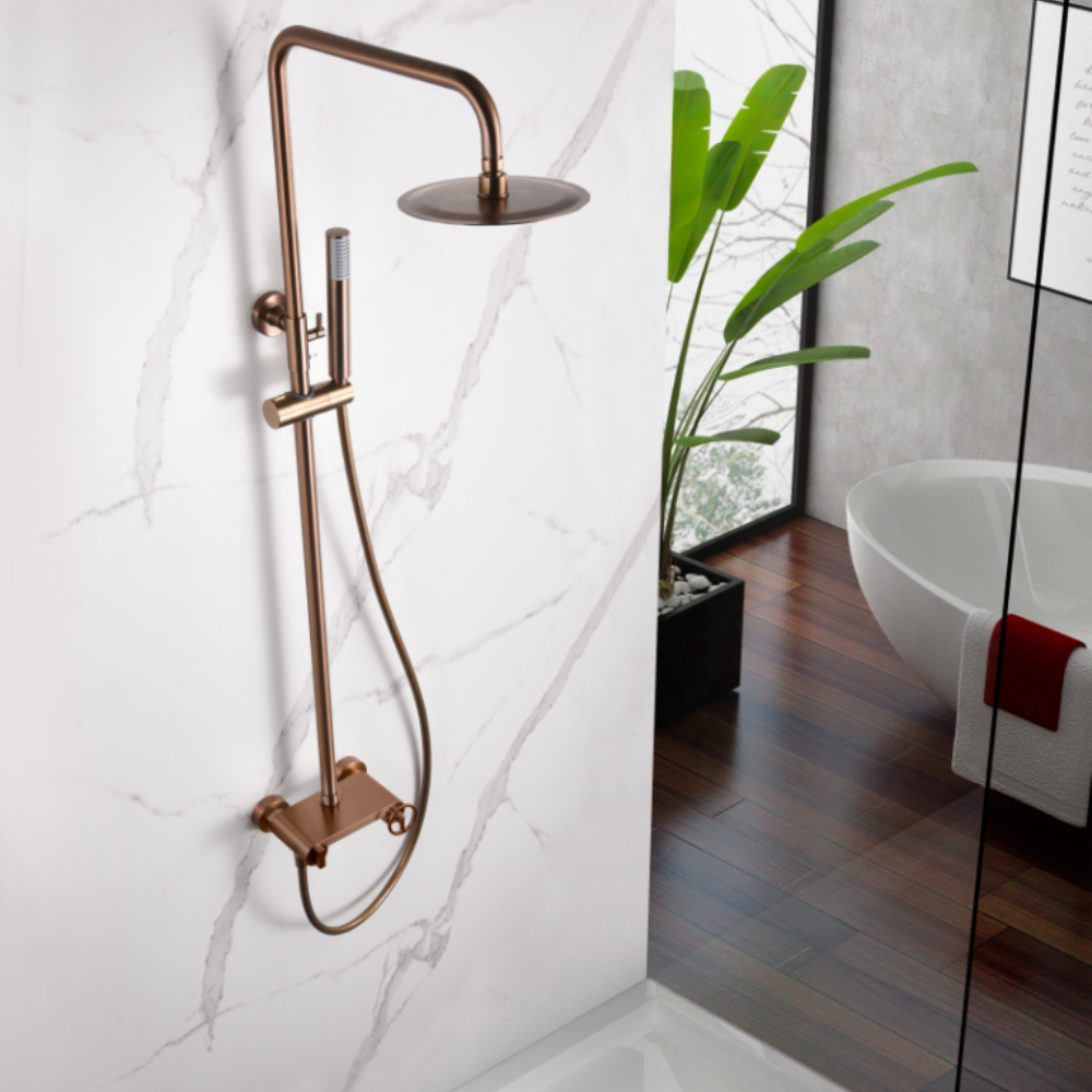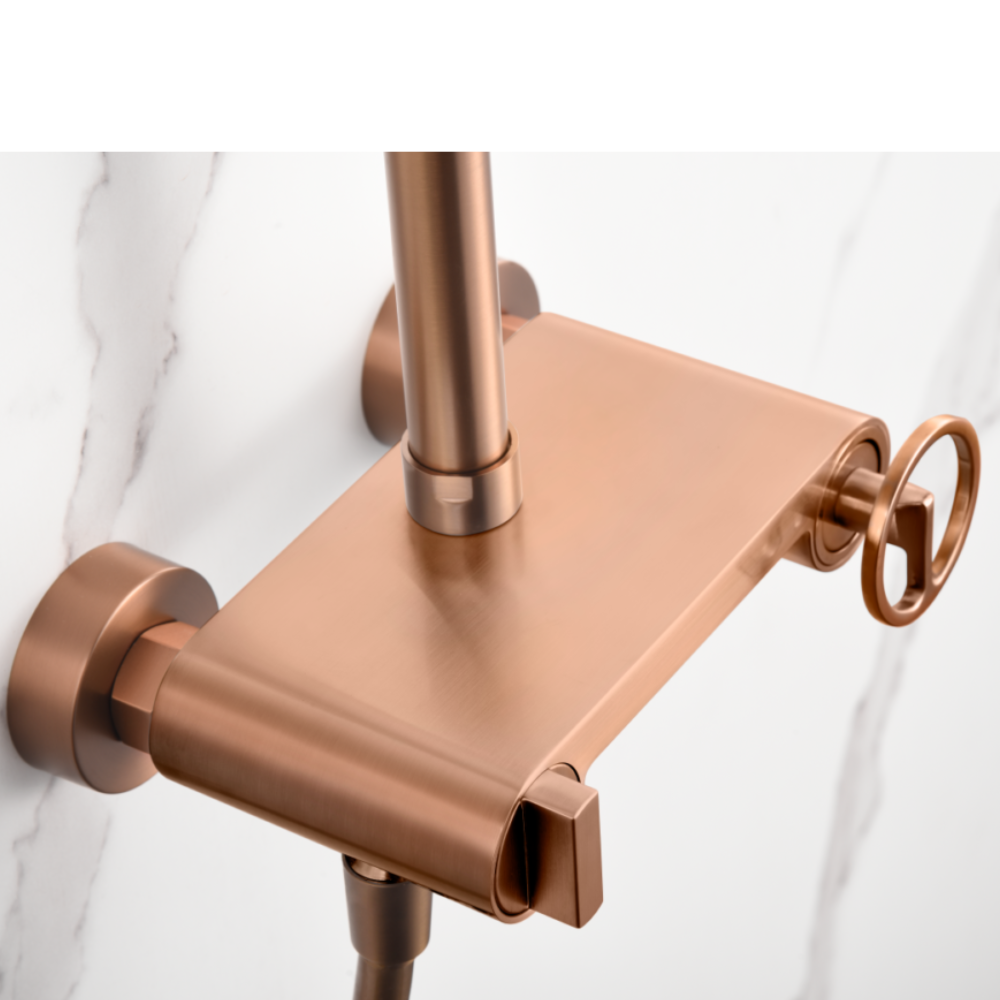 Barra de ducha monomando oro rosa cepillado serie Olimpo.