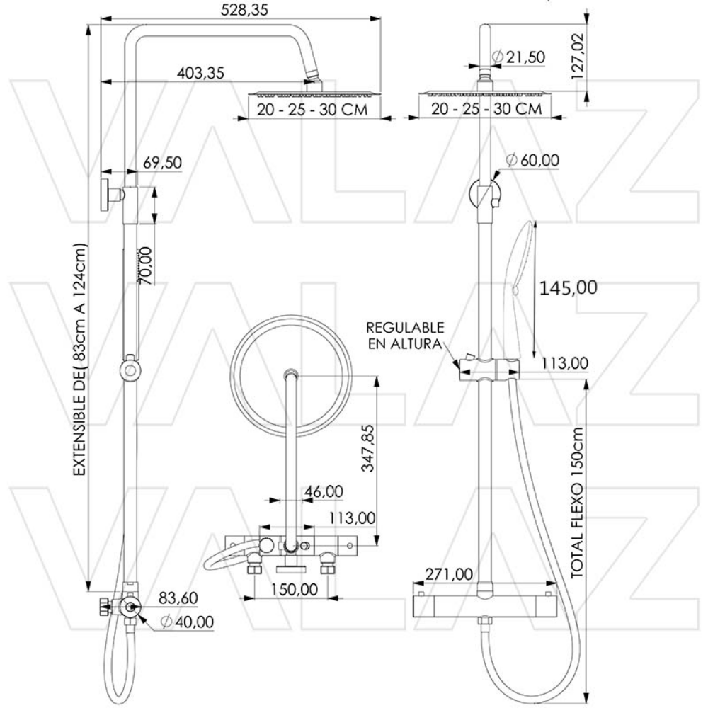 La barra de duchade la Serie Ebro destaca por su diseño redondo y su práctico sistema termostático, que permite mantener la temperatura del agua constante durante el uso. Su acabado en negro mate aporta un estilo moderno y elegante al baño, ideal para quienes buscan funcionalidad y diseño.