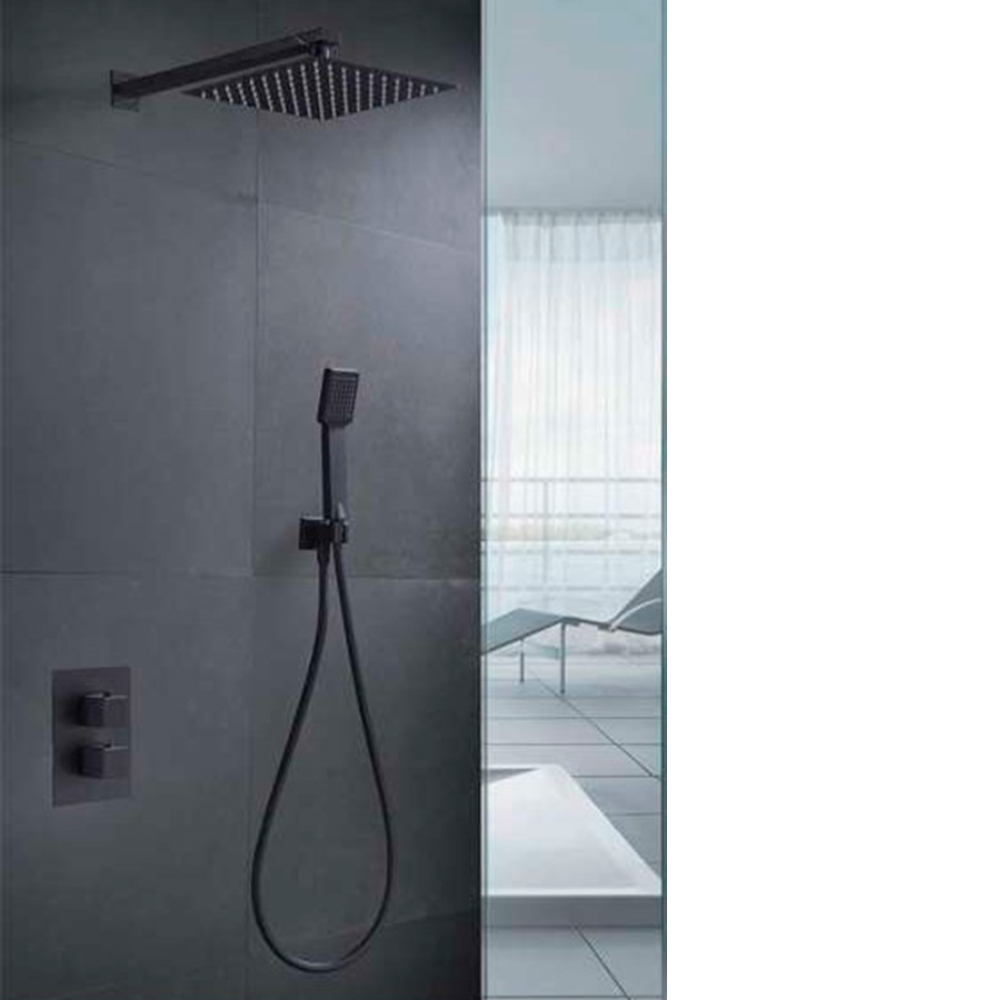 Grifería termostática de latón negro mate, 2 vías con caja de