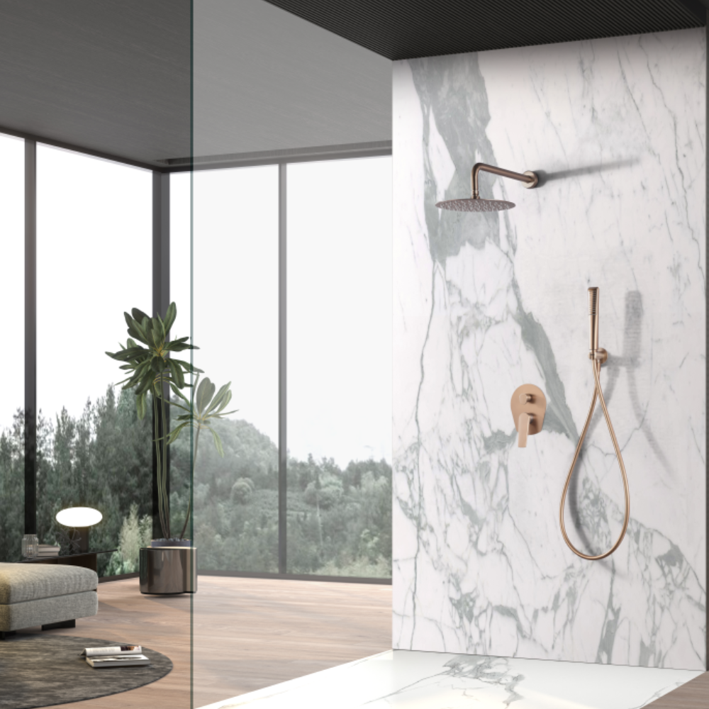 Acabado oro rosa cepillado.