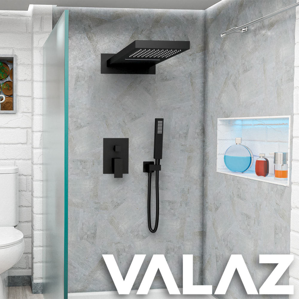 Sé el primero en valorar “Ducha empotrada monomando cuadrada cascada y lluvia negro mate serie Niagara”