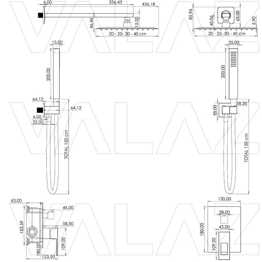 Tamaño rociador: 20×20, 25×25, 30×30 cm