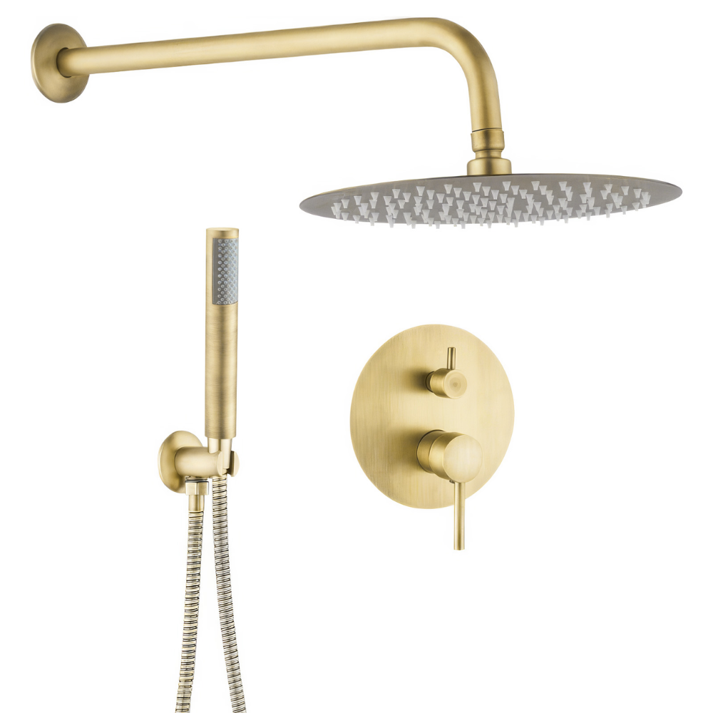 Con un acabado dorado envejecido, esta ducha empotrada de la serie Jucar ofrece una combinación de lujo y elegancia clásica. El monomando de 2 vías permite disfrutar de dos funciones: el rociador efecto lluvia y la alcachofa de mano, brindando comodidad y estilo a tu baño.