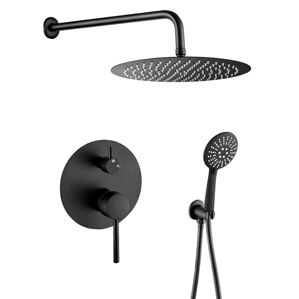 La ducha empotrada monomando a pared redonda de la Serie Cabriel en acabado negro mate es ideal para quienes buscan un diseño moderno y una funcionalidad eficiente. Con su maneta ancha, permite un control preciso del agua, tanto en temperatura como en flujo. Es una opción perfecta para transformar tu baño en un espacio elegante y cómodo.