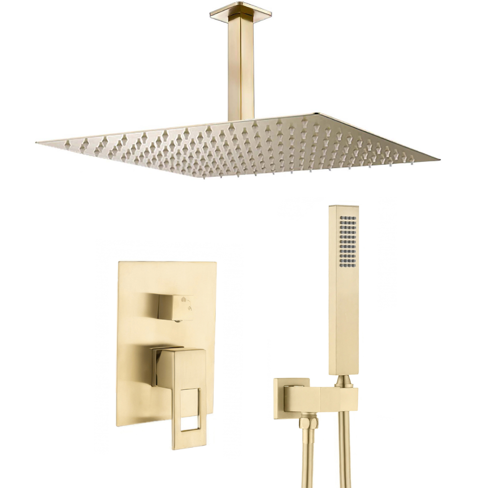 La ducha empotrada monomando techo cuadrada de la serie Tormes combina elegancia y funcionalidad, con un acabado dorado cepillado que añade un toque sofisticado a tu baño. Su diseño cuadrado y maneta hueca cuadrada proporciona un estilo moderno y fácil de usar. Además, ofrece dos funciones para una experiencia de ducha completa.