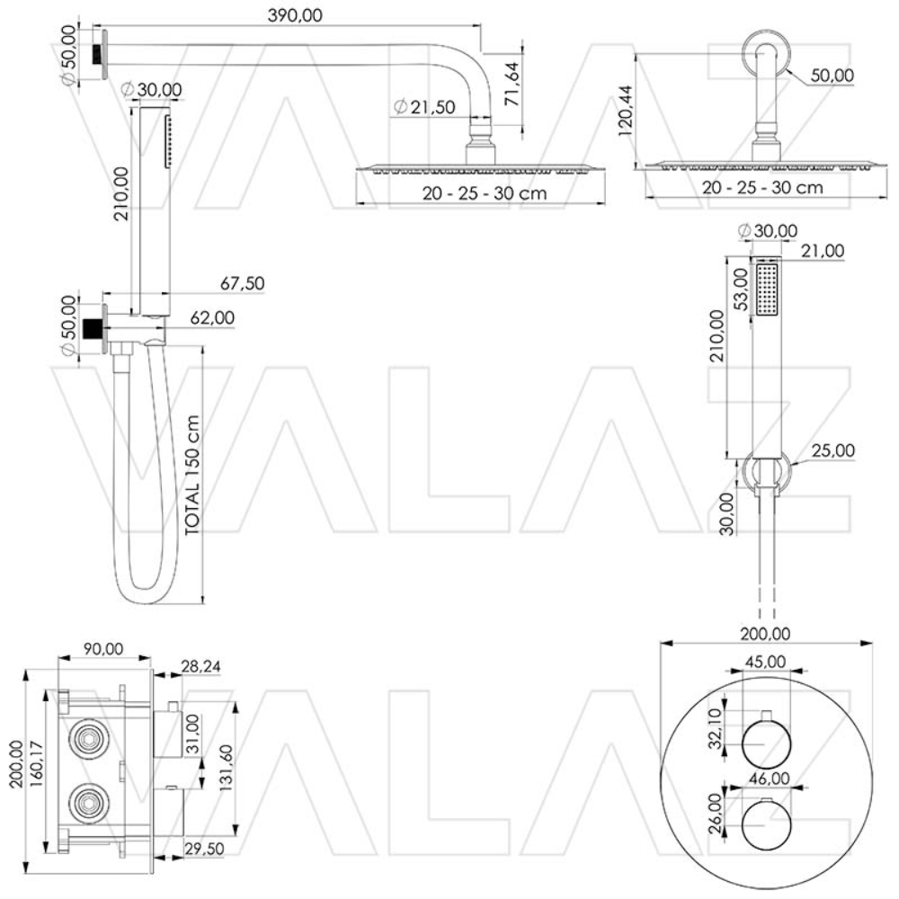 Tamaño del rociador: Disponible en 20, 25 y 30 cm