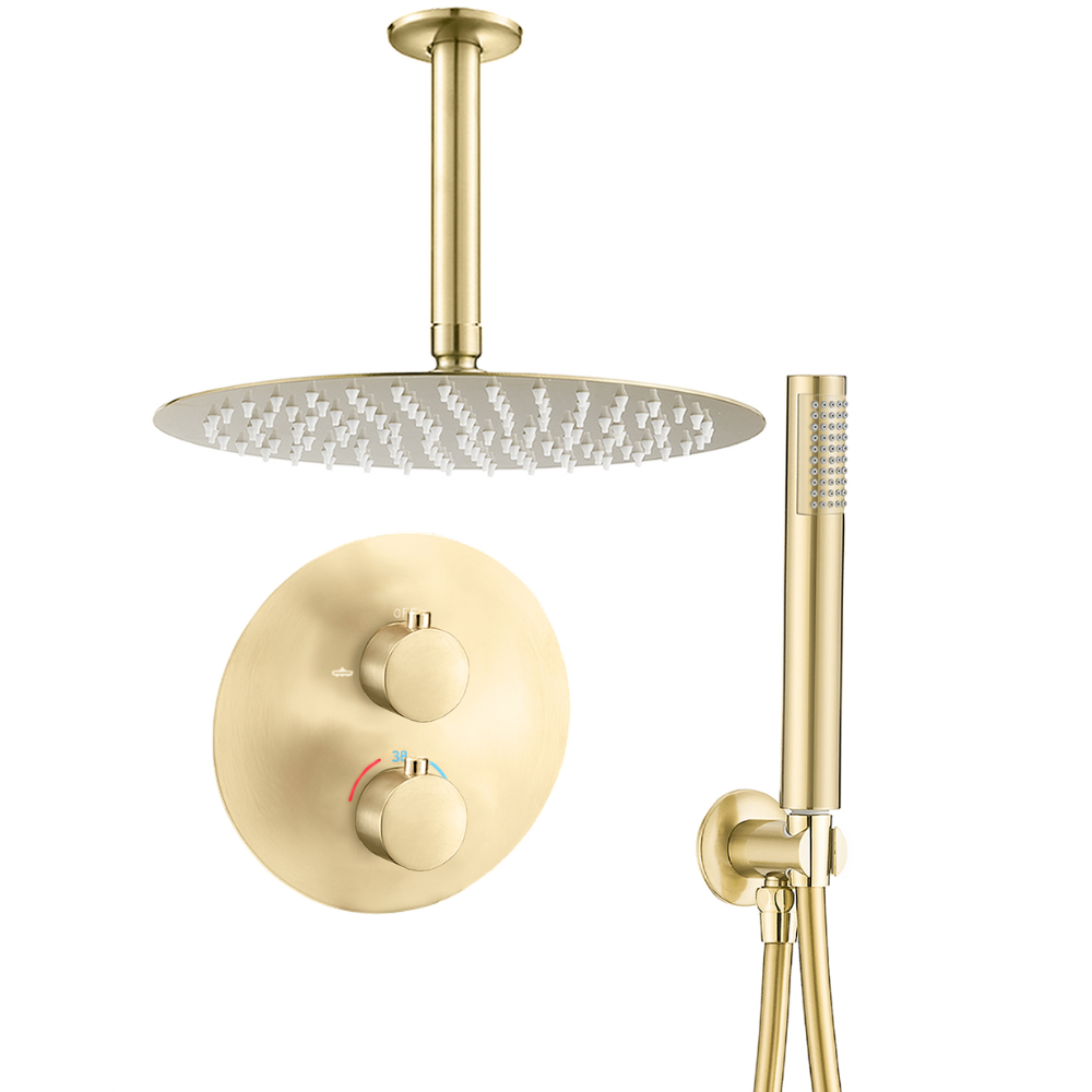 Incluye: Rociador disponible en tamaño 20, 25 y 30 con soporte a techo, termostática de 2 vías (rociador efecto lluvia y alcachofa de mano) flexo de 150cm y alcachofa de mano con soporte.