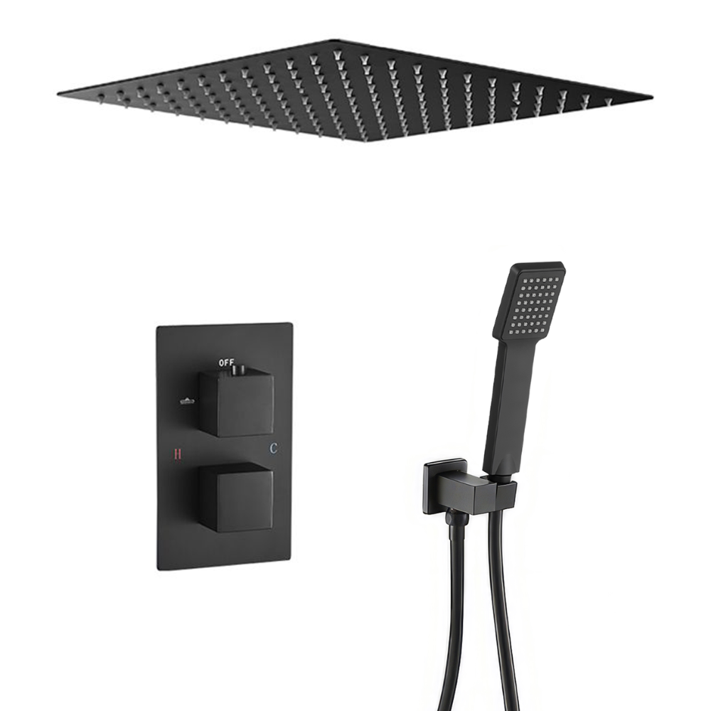 Con su acabado negro mate, esta ducha encastrada aporta elegancia y sofisticación a cualquier baño. Su sistema termostático garantiza un control preciso de la temperatura, mientras que el diseño encastrado proporciona una instalación limpia y minimalista. Ideal para quienes buscan un estilo contemporáneo sin comprometer la funcionalidad.