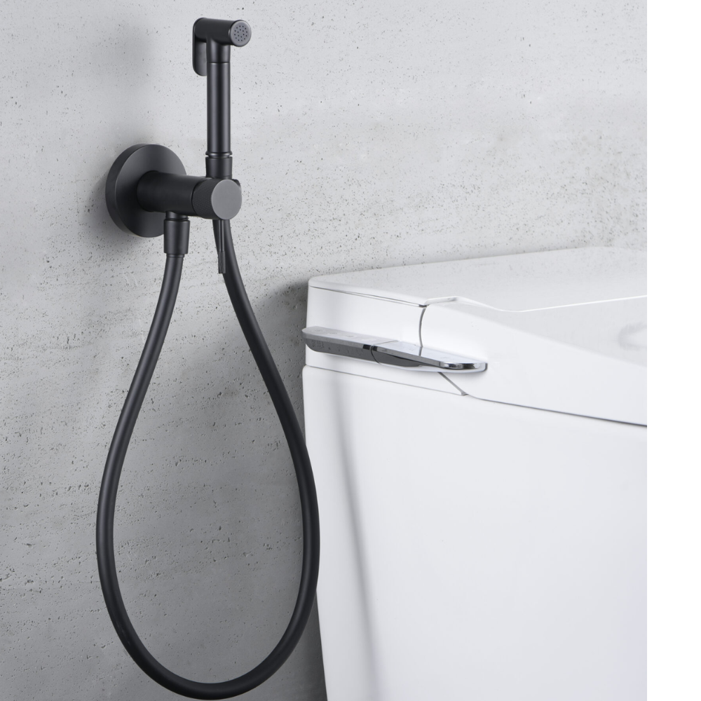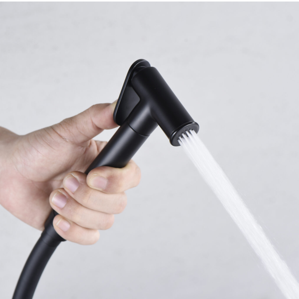 Grifería empotrada de bidé. Agua fría y caliente. Mango de 1 posición. Flexo de PVC, acabado negro mate.