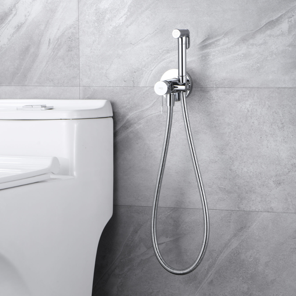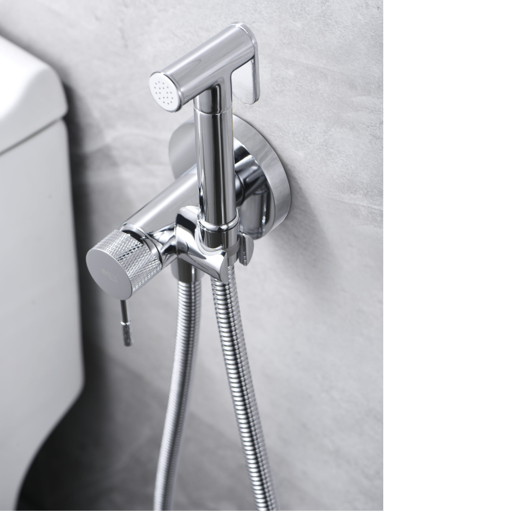 Grifería empotrada de bidé. Agua fría y caliente. Mango de 1 posición. Flexo metálico acabado cromo