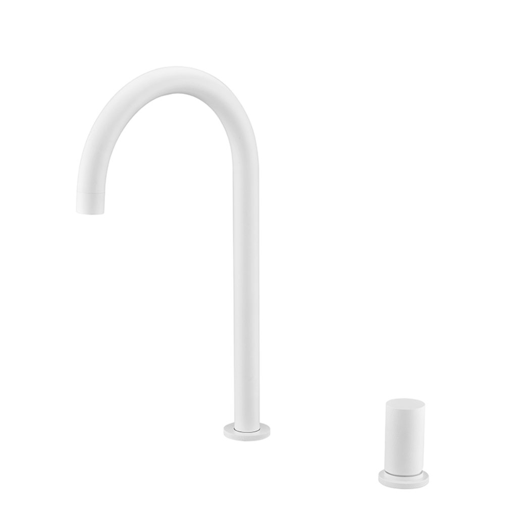 Grifería monomando. Cuerpo de grifería latón blanco mate. Cartucho cerámico de 25 mm. Latiguillos 50cm.