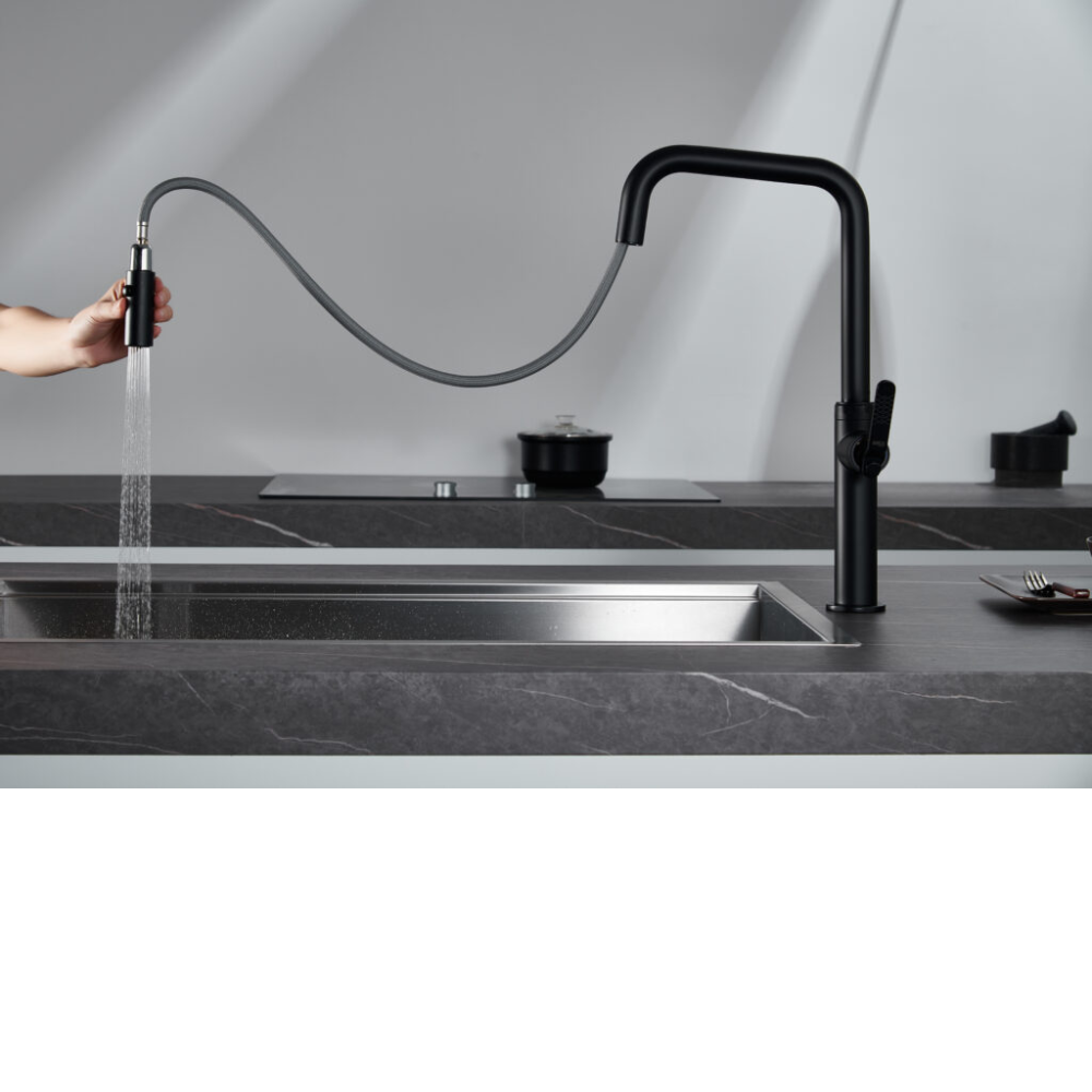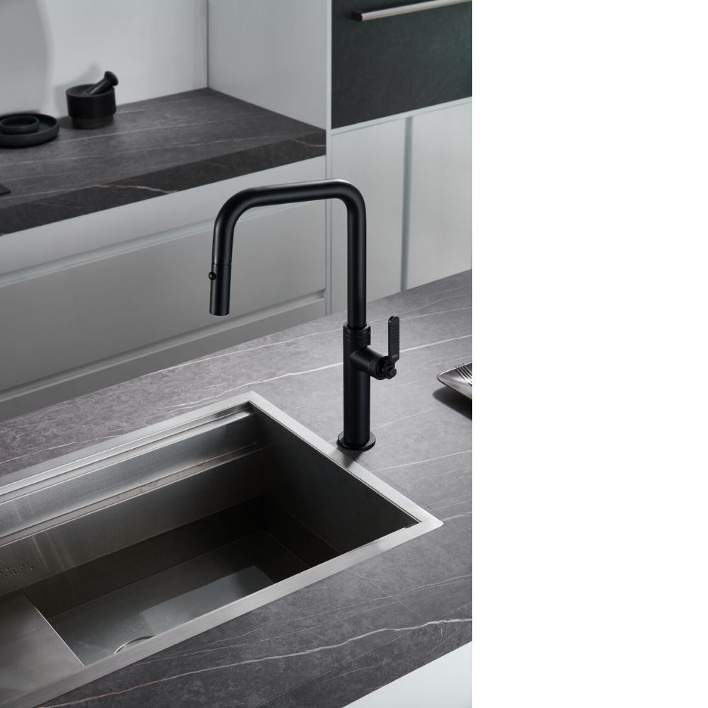 Grifería de cocina monomando extraíble negro mate serie Niza.