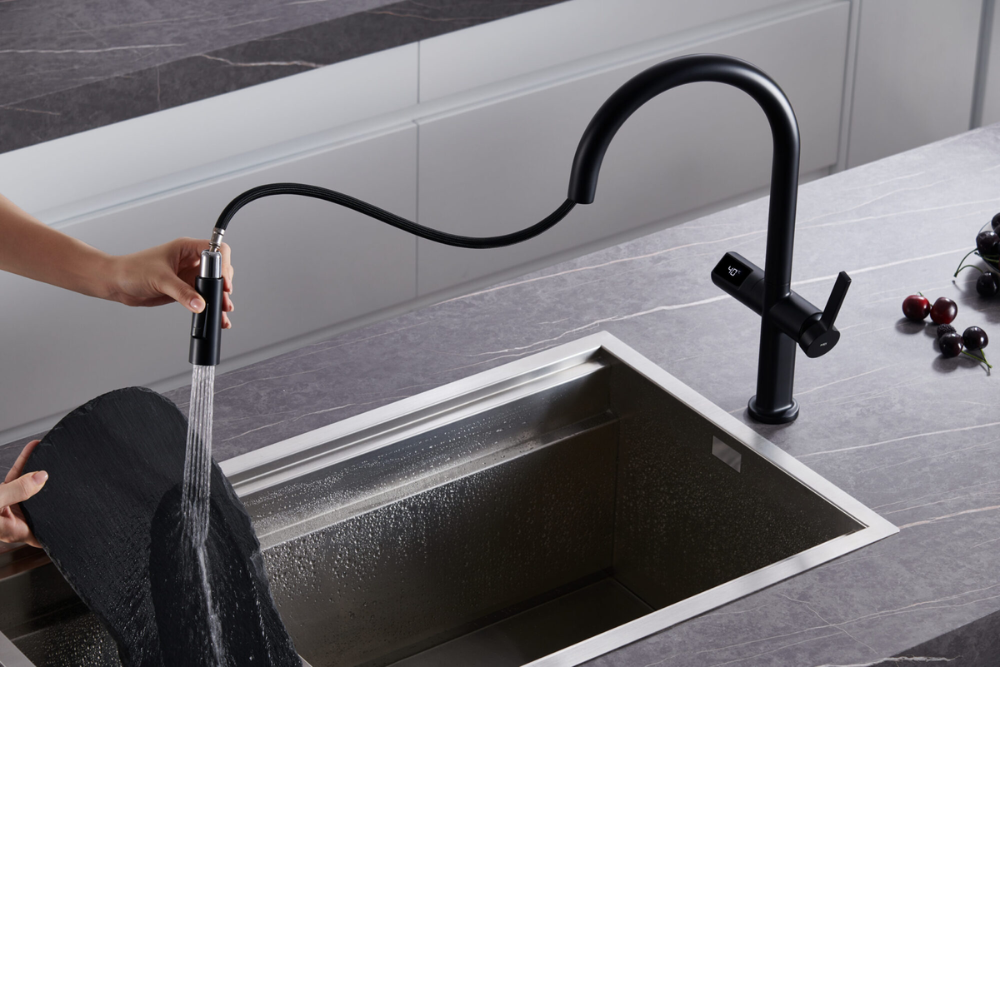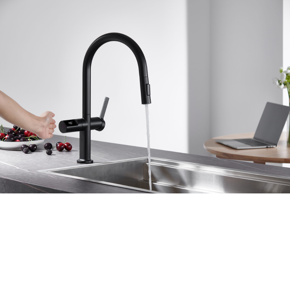 Tecnología on/off (start/stop) con sensor de movimiento y panel digital con temperatura de agua. (Funciona con pilas 4x AA)