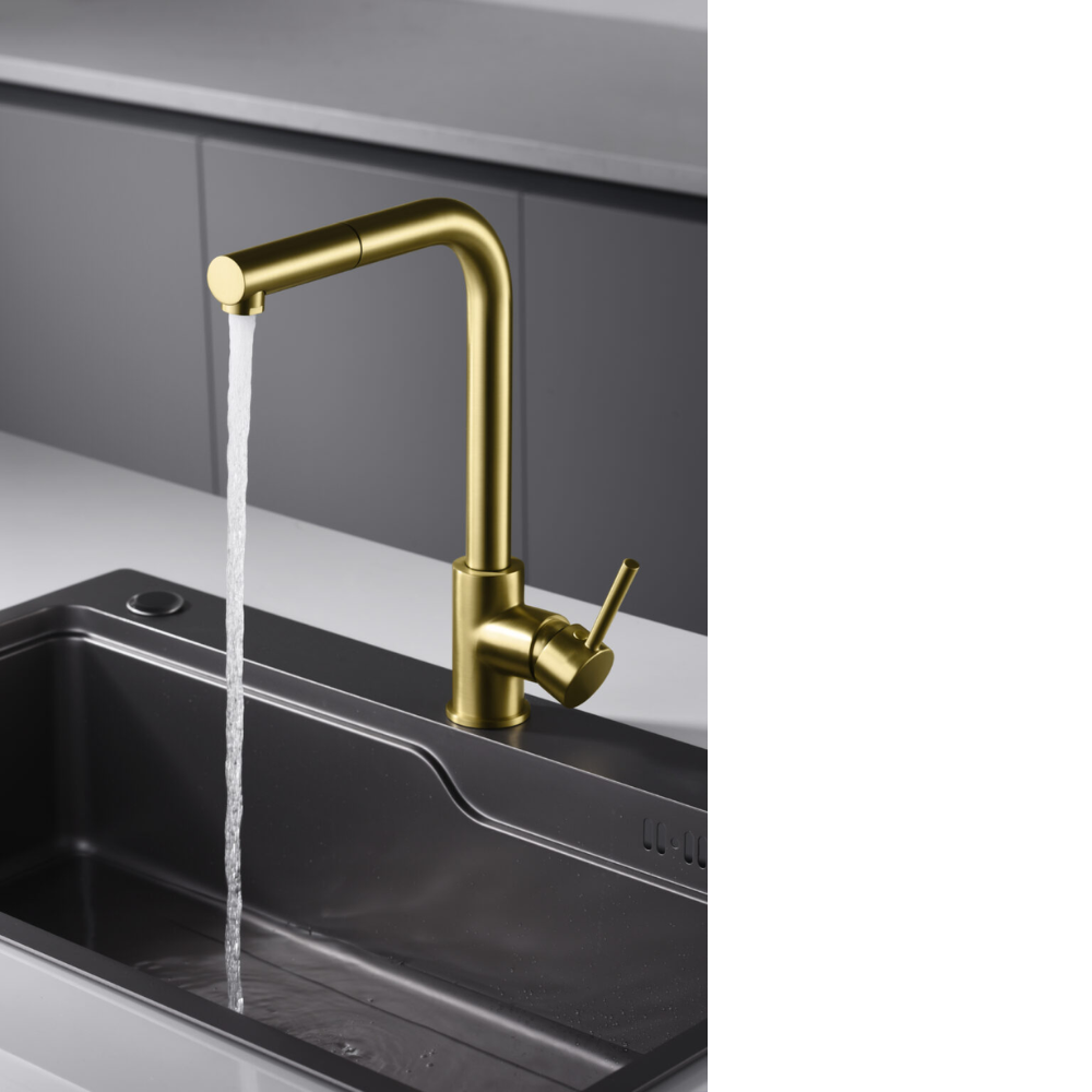 Grifería de cocina monomando extraíble oro cepillado serie Malta.