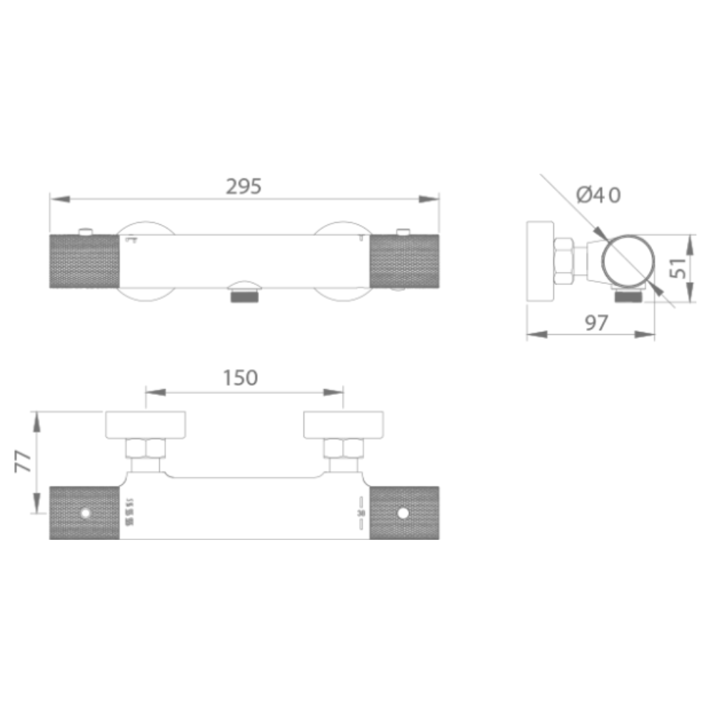 Grifería termostática baño-ducha de latón black gun metal con distribuidor incorporado.