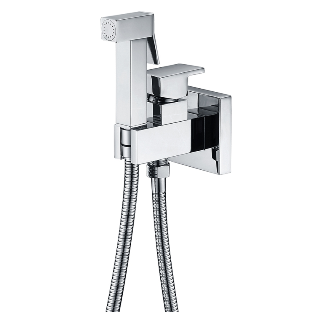 Grifería empotrada de bidé. Agua fría y caliente. Mango de 1 posición Latón cromado. Flexo de acero reforzado de 100 cm
