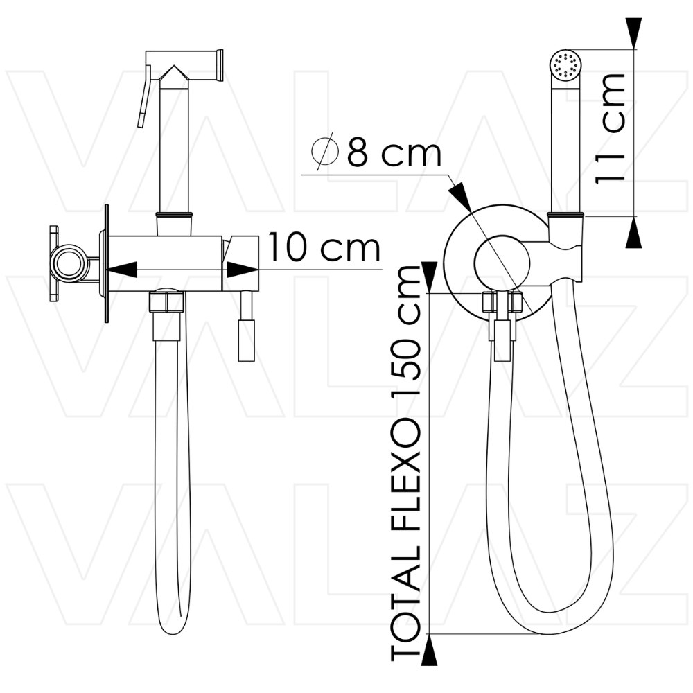 Grifo de bidet empotrado de 2 vías agua fría y caliente Conexión : G1/2 Material: cartucho cerámico, cuerpo de la grifería de latón, flexo de acero inoxidable de 150cm Presión: 0.1-1.0Mpa