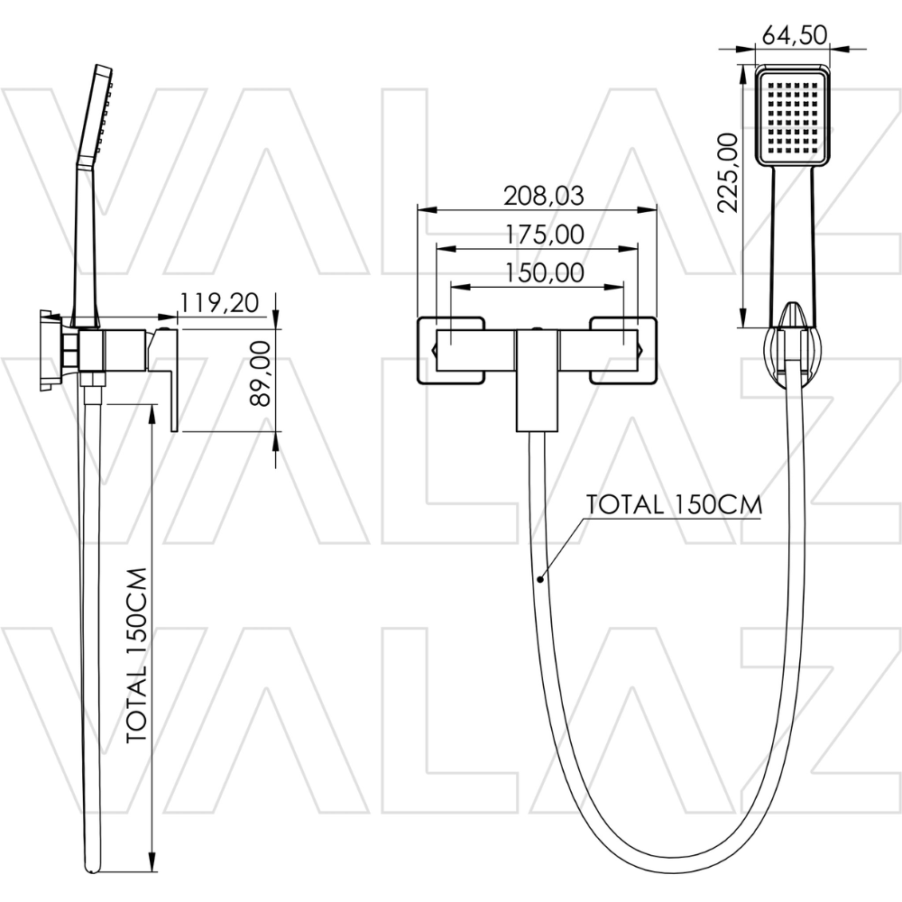 Incluye: cuerpo de la grifería de latón, cartucho cerámico, flexo de acero inoxidable y alcachofa de mano de ABS Acabado: cromado