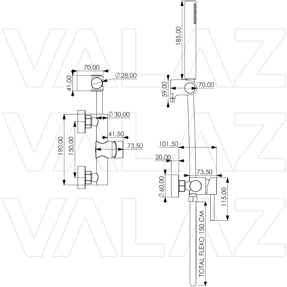 Incluye: cuerpo de la grifería de latón, cartucho cerámico, flexo de acero inoxidable y alcachofa de mano de ABS Acabado: negro mate