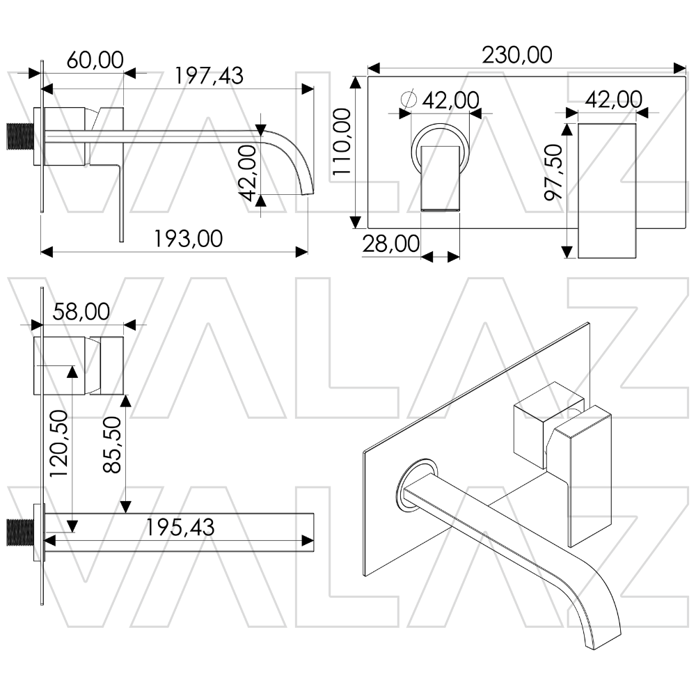 Incluye: Cuerpo de la grifería en latón, cartucho cerámico, grifo mezclador agua fría y caliente, con caja empotrada. Caño de 21 cm.