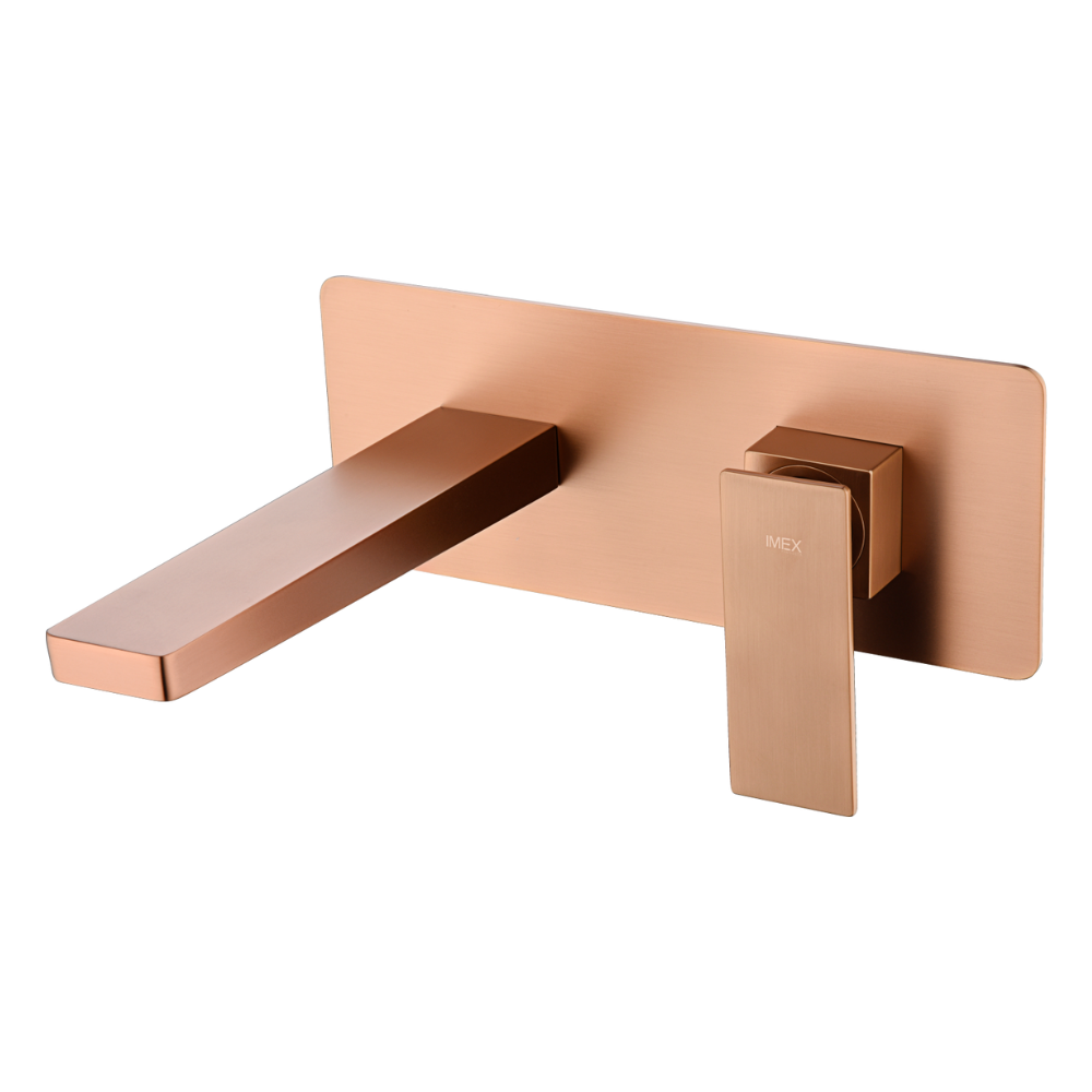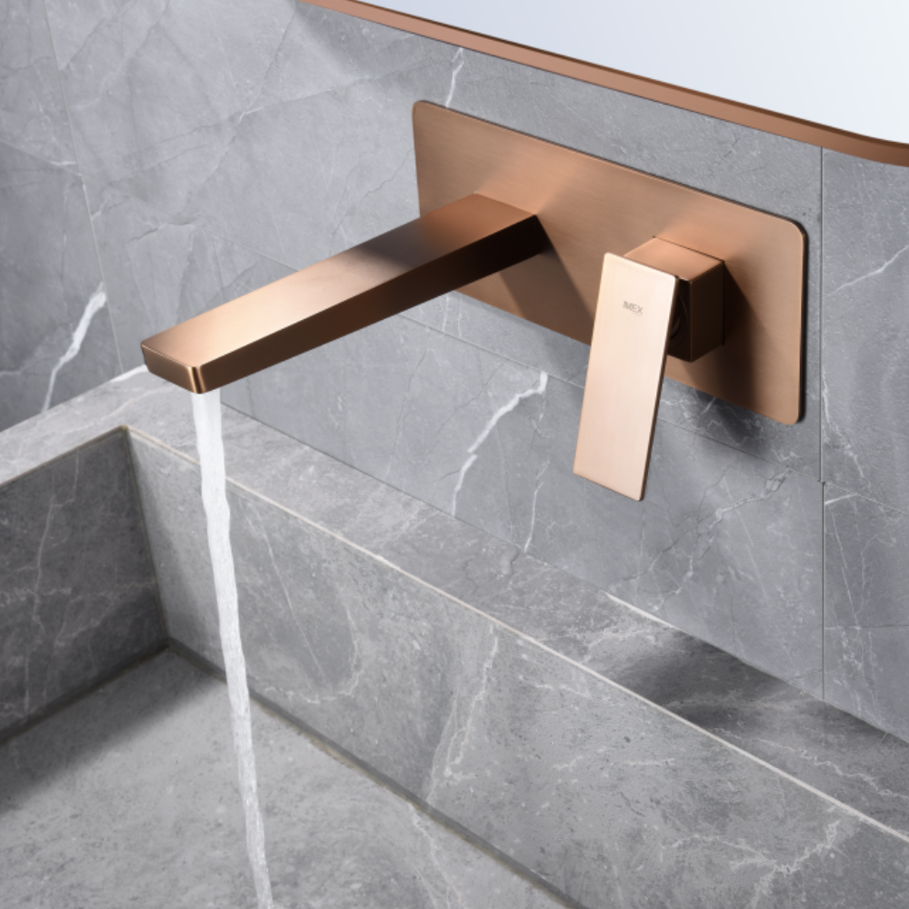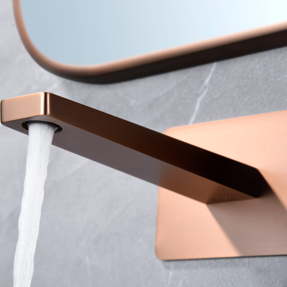 Grifería empotrada monomando. Latón acabado oro rosa cepillado. Incluye box de registro.