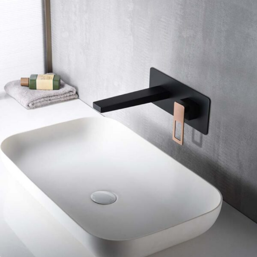 Grifería empotrada monomando de latón. Negro mate, oro rosa. Box de registro.