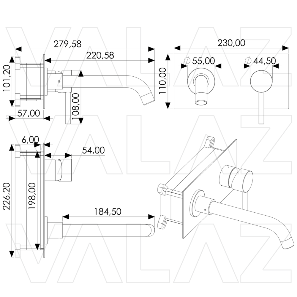 • Caño: 21 cm de longitud