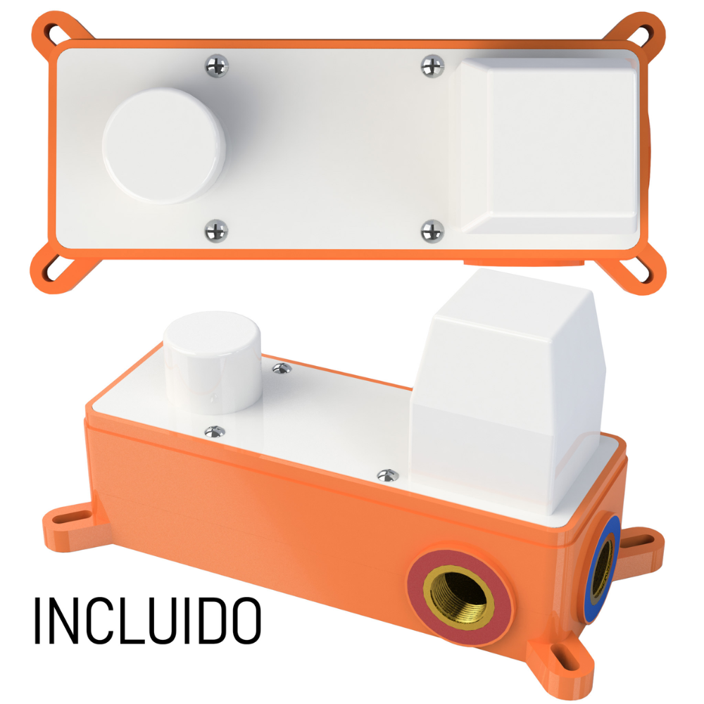 Incluye: Cuerpo de la grifería en latón, cartucho cerámico, grifo mezclador agua fría y caliente, con caja empotrada. Caño de 21 cm. Acabado: color cromo
