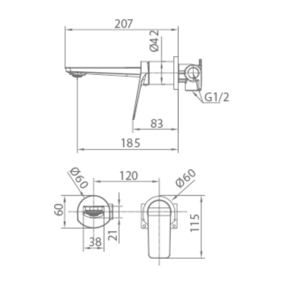 Grifería empotrada monomando Latón acabado cromo. En dos partes independientes. Cuerpo empotrado directo a pared. Sin caja de registro