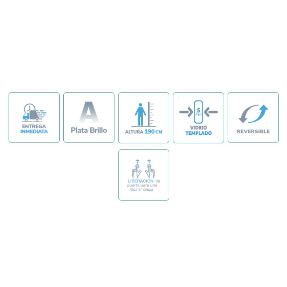 Características: Vidrio templado de seguridad de 5 mm. Con tratamiento anti-cal aplicado. Fácil limpieza. Vidrio en transparente o con opción serigrafía. Doble rodamientos regulables arriba y abajo. Tirador robusto de alta duración. Reversible, es se puede poner fijo a la derecha o a la izquierda. Perfiles en aluminio anonizado. Color del perfil es plata brillo. Goma […]