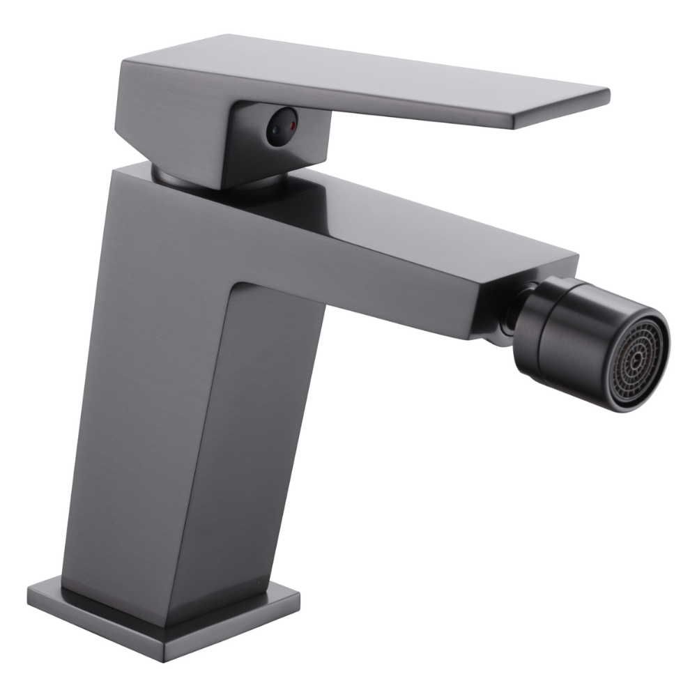 Monomando de bidé. Cuerpo de grifería en latón. Acabado black gun metal. Cartucho cerámico Ø 26 mm TOP. Flexos Ø3/8”.