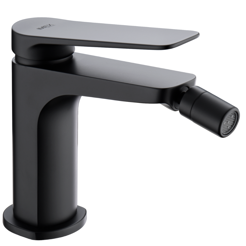 Monomando de bidé. Cuerpo de grifería en latón. Acabado negro mate. Cartucho cerámico Ø26mm. TOP Flexos Ø3/8