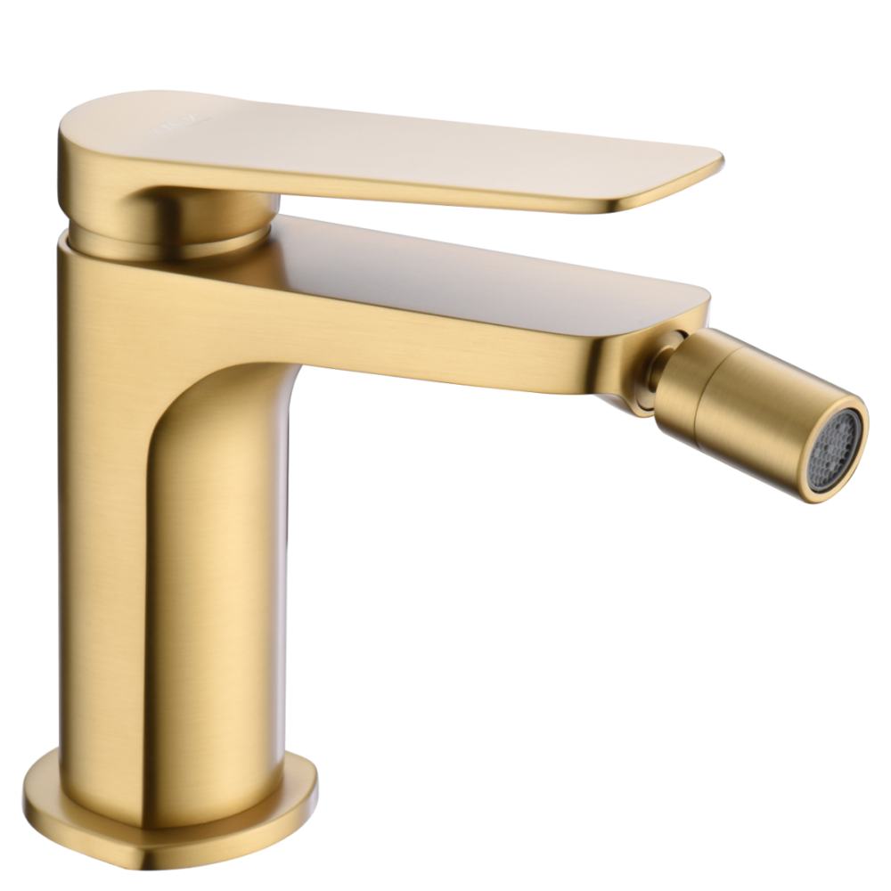 Monomando de bidé. Cuerpo de grifería en latón. Acabado oro cepillado. Cartucho cerámico Ø26mm. TOP Flexos Ø3/8
