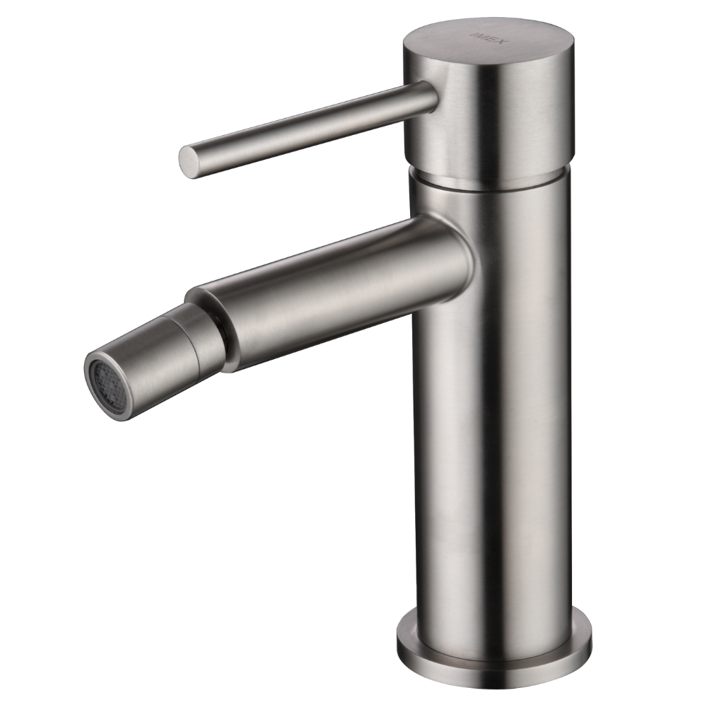 Monomando de bidé. Cuerpo de grifería en acero S316, máxima calidad anticorrosión y alta resistencia. Cartucho cerámico de 25 mm. Latiguillos 3/8.