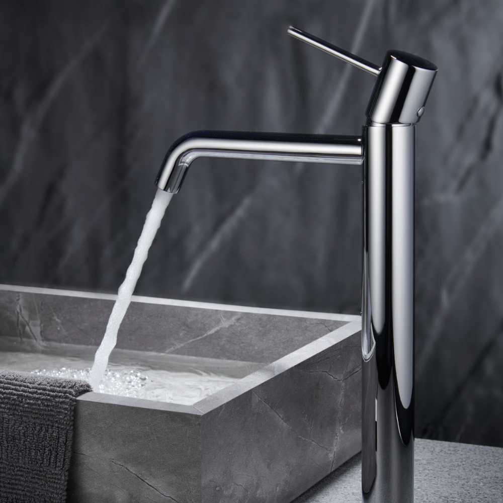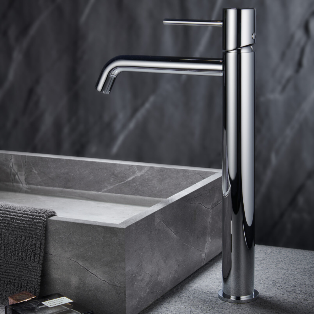 Monomando lavabo alto. Cuerpo grifería en latón cromado. Cartucho cerámico de 25mm. Latiguillos 3/8.