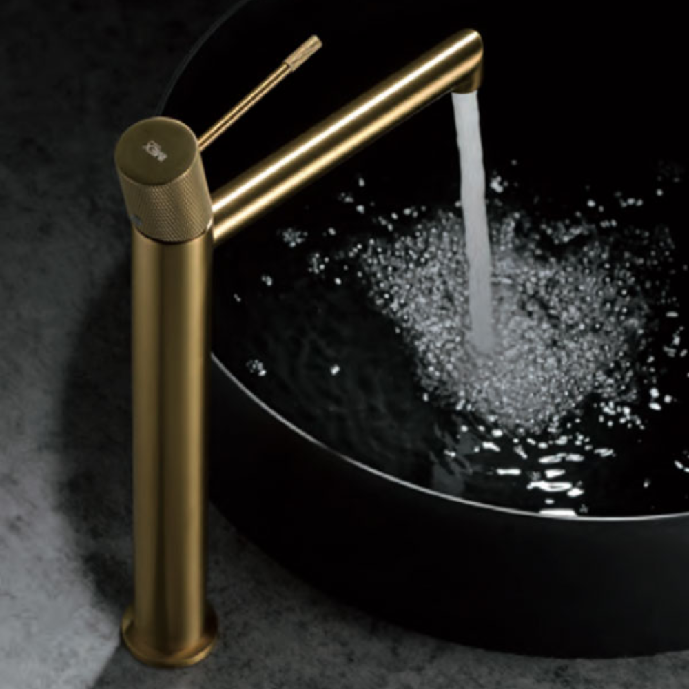 Cuerpo grifería en latón oro cepillado.