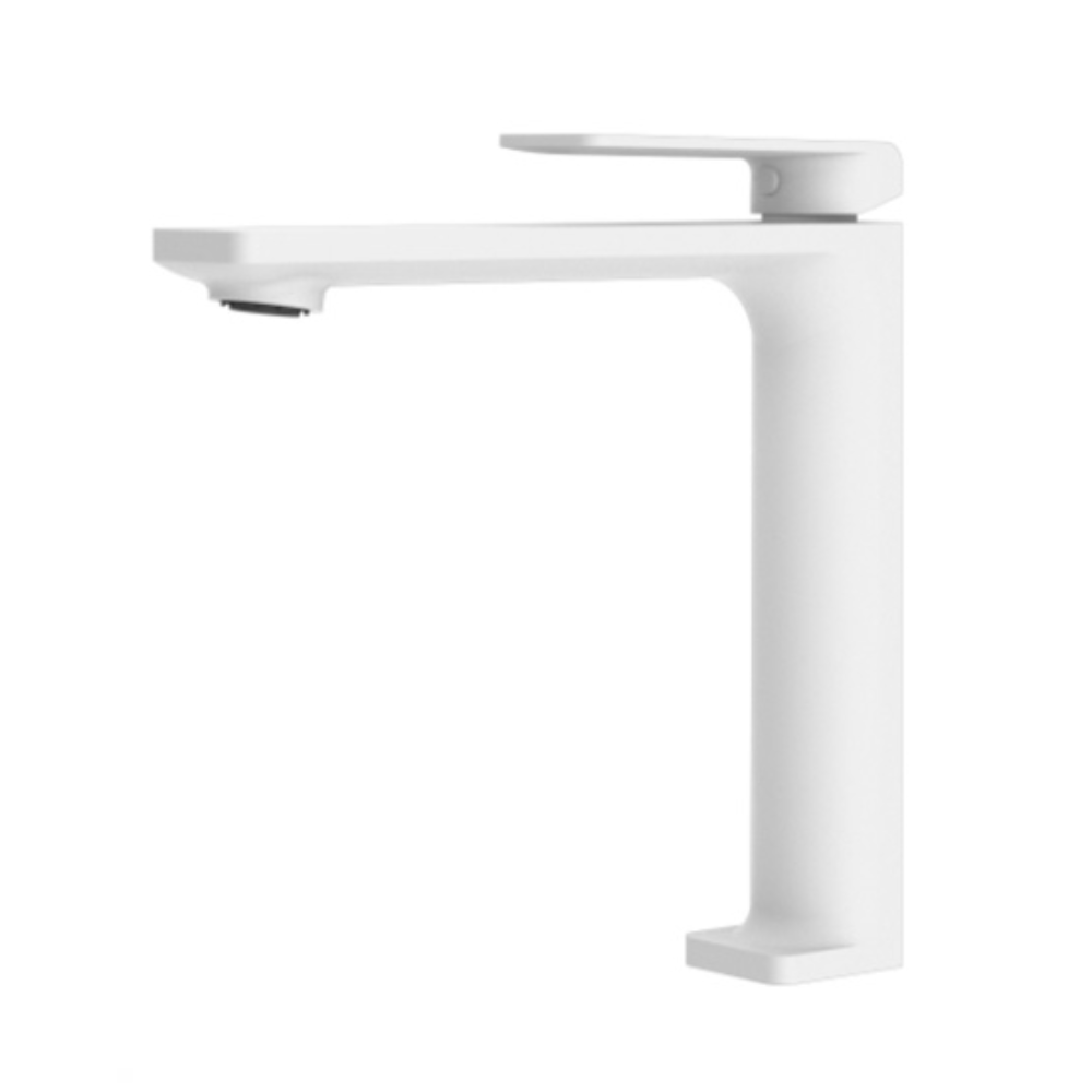Monomando de lavabo caño alto blanco serie Fiyi.
