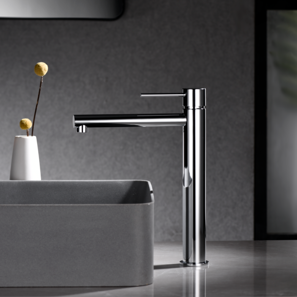 Monomando de lavabo caño alto cromado serie Milos