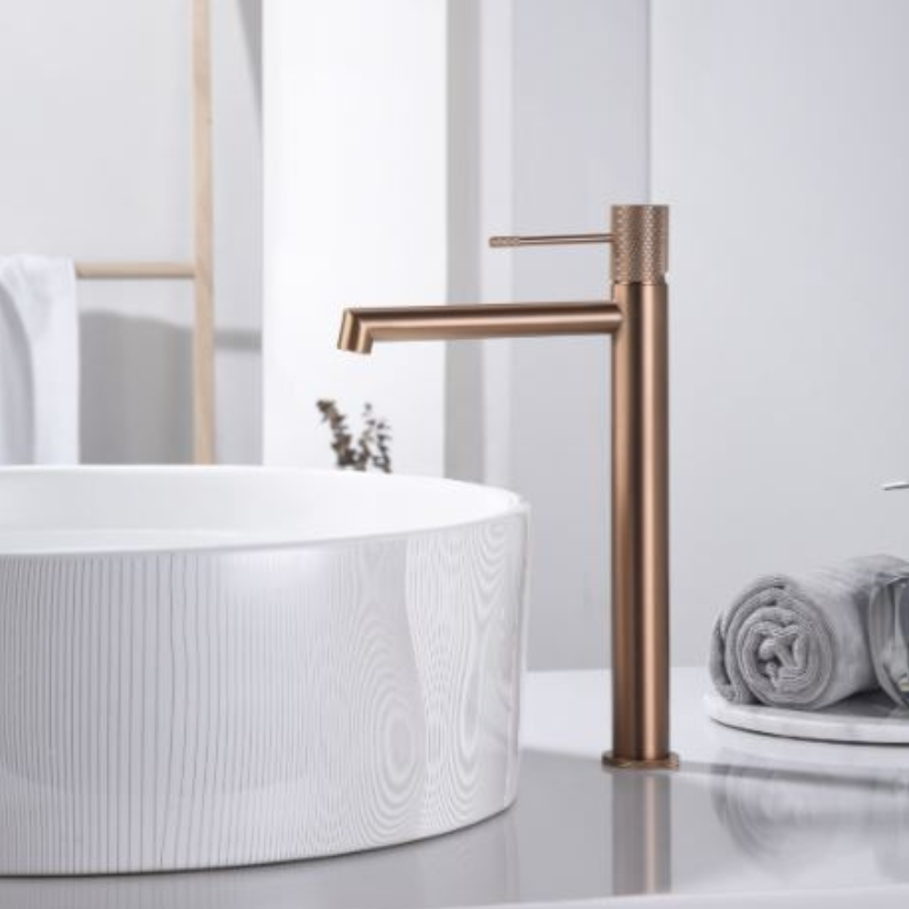 Cuerpo grifería en latón oro rosa cepillado.