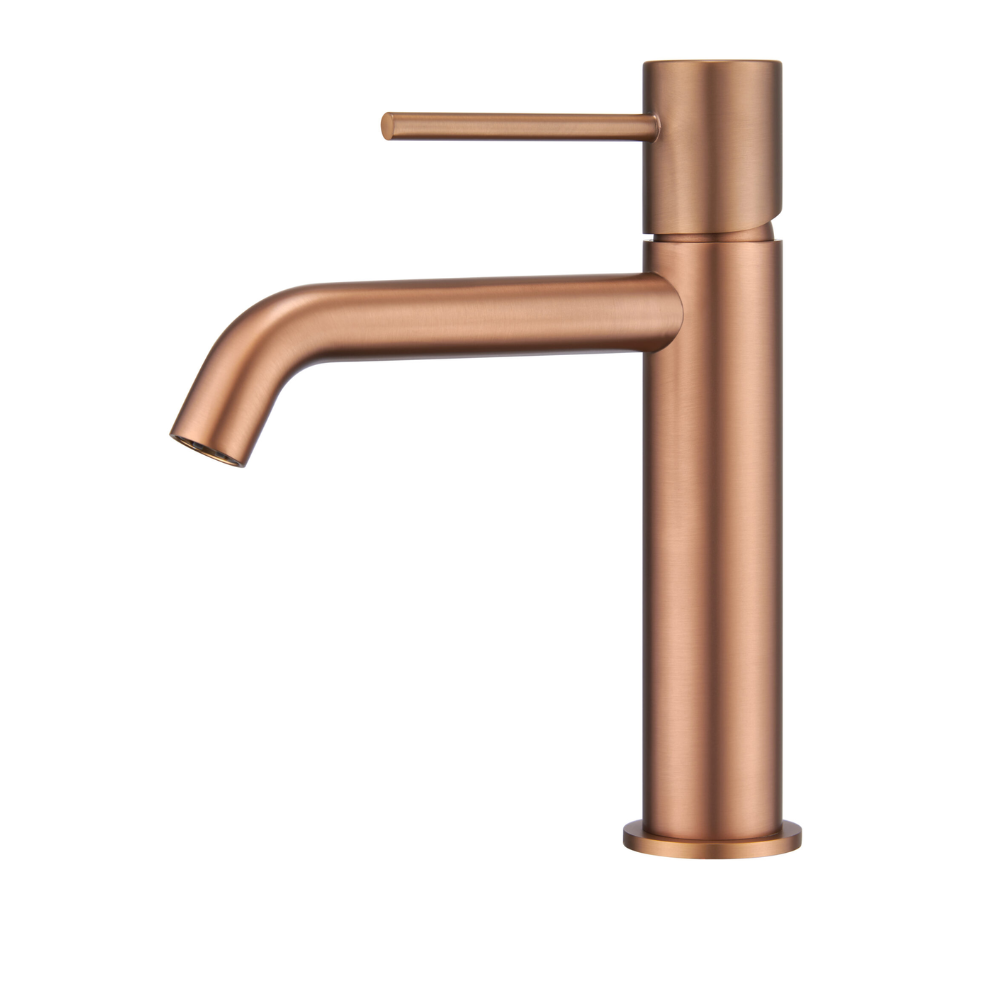 Monomando lavabo. Cuerpo grifería en latón acabado Oro Rosa cepillado (PVD). Cartucho cerámico de 25mm. Latiguillos 3/8.