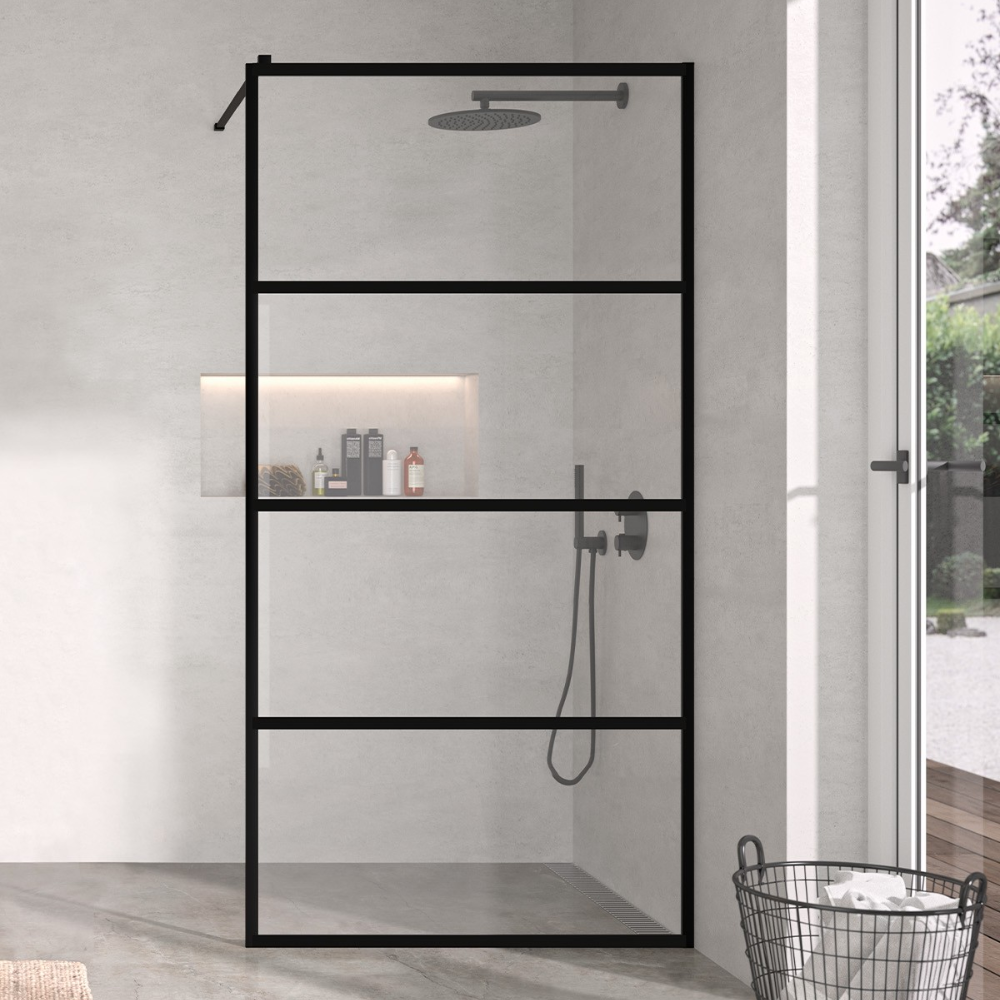 Panel fijo lineas de la serie FRESH de Kassandra. Perfiles negro mate en aluminio. Barra de sujeción en aluminio lacado negro mate articulada extensible de 65 a 100 cm. Elaborado en vidrio templado de 8 mm transparente. Reversible, para instalación en cualquier posición. Con tratamiento Easy Clean, para mayor facilidad de limpieza. Disponible en 4 medidas: 90, 100, 110 y 120 cm de […]